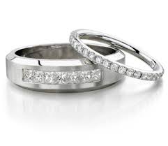 An engagement ring is worn when a lady is engaged and it is usually more ornate ring with a nice rock. A wedding band is places on a ladies and a males left hand during the wedding ceremony. The bands are usually more simple. After a wedding, wedding bands are usually work underneath the engagement ring for a lady. Men don't usually have an engagement ring. Their wedding band signifies their marriage status.