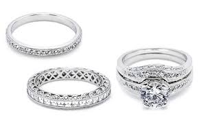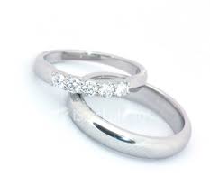 An engagement ring is worn when a lady is engaged and it is usually more ornate ring with a nice rock. A wedding band is places on a ladies and a males left hand during the wedding ceremony. The bands are usually more simple. After a wedding, wedding bands are usually work underneath the engagement ring for a lady. Men don't usually have an engagement ring. Their wedding band signifies their marriage status.